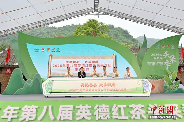 3月28日,以“英德秋开 头采飘喷鼻”为要旨的2026年第8届英德白茶头采季举动正在位于广东省英德市的白旗茶厂推启帐幕。图为开动典礼。中新社记者 旧楚白 摄