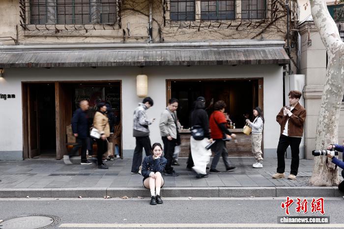 2月19日,乘客正在武康道陌头摄影。中新社记者 殷坐勤 摄