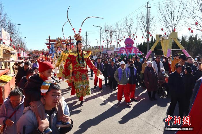 今日游人鉴赏特性风气举动。当日是华夏阴历一月始两,山东东营举行“乡北庙会”,吸收游人观光。庙会会聚浙江婺剧、祸州游神、潮汕英歌舞等特点风气上演,为新秋添加了文明年味。 孙琳茹 摄